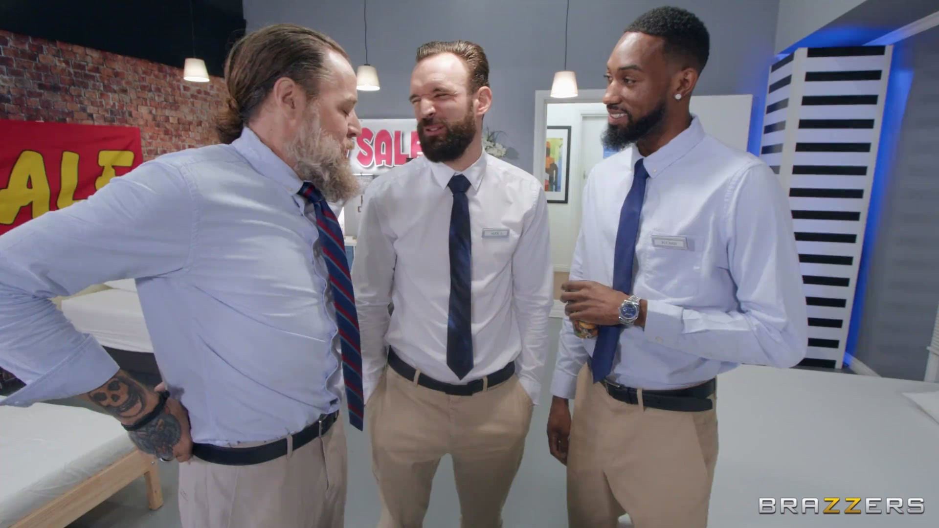 Jayla Page, voluptuous ebony babe with massive tits and phat ass, gets railed in wild mattress store threesome by Alex Legend and Hollywood …